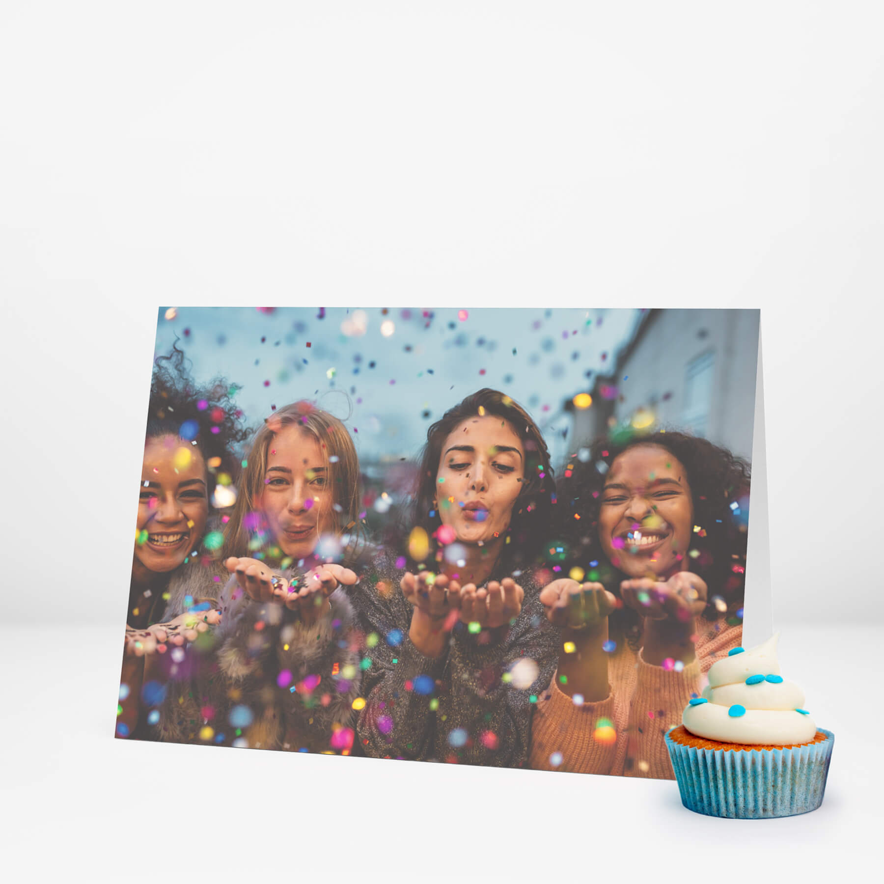 The folded Din A4 card is particularly classy and perfect for special occasions. You can easily design it online according to your vision and order it per piece. We'll also send you a matching envelope so you can send it by post or present it in style.