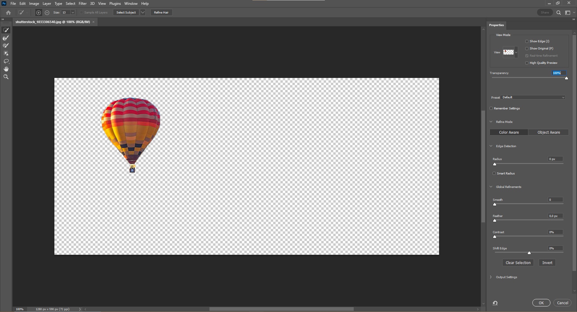 As in the previous methods, the edges of the quick selection tool can be refined afterwards. However, changes to subjects, such as the one in our example image, should be made with extreme caution. The options "Soft edge" or "Move edge" could lead to smaller parts of the picture being cut off.