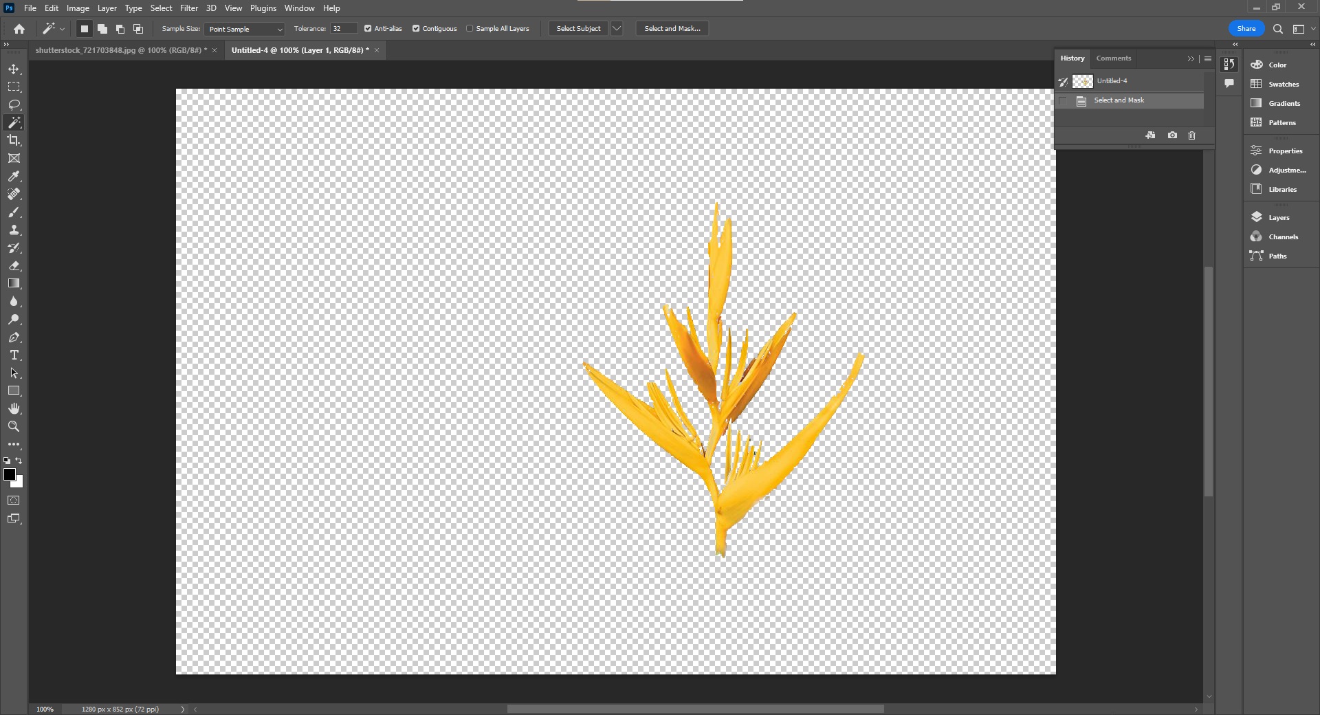 The Magic Wand tool is usually only suitable for cropping simple and uniform images. In our example, the flower is not uniformly yellow, but has different shades of yellow. This problem can be solved quite easily by using the Magic Wand tool several times.