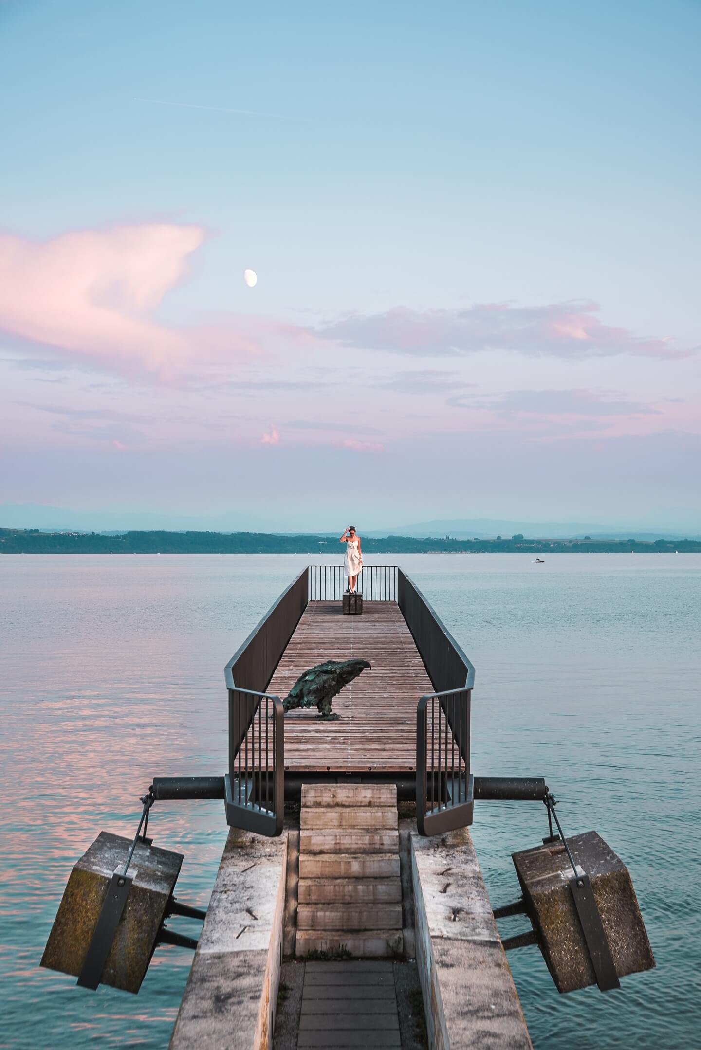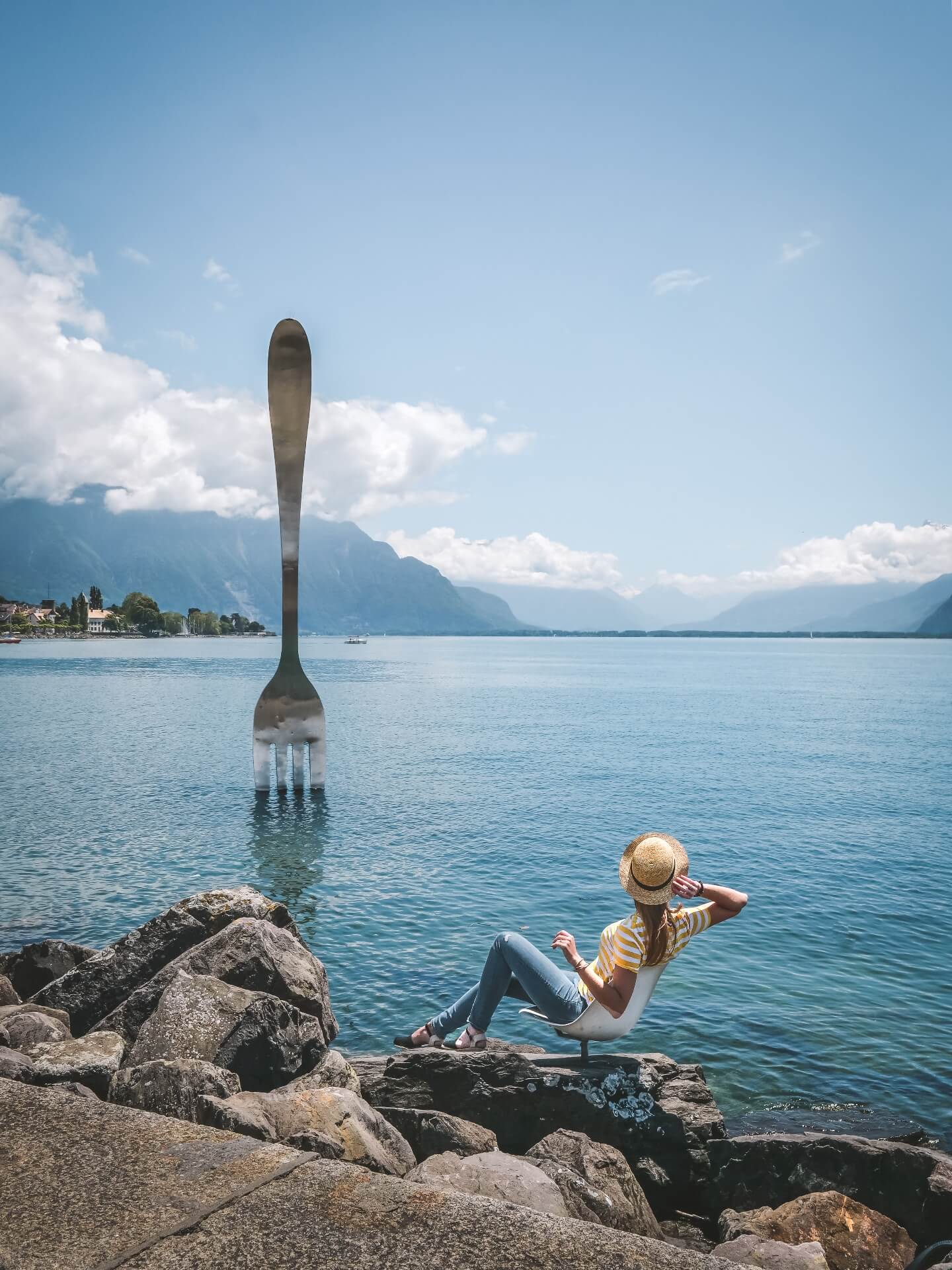 By Lake Geneva, or more specifically in Vevey, you’ll find a rather surprising piece of art. “La Fourchette” – an oversized fork in the middle of the lake – fascinates visitors to the pretty promenade and also makes for a fantastic subject for your photographs. But the former home of Charlie Chaplin has much more to offer besides that!