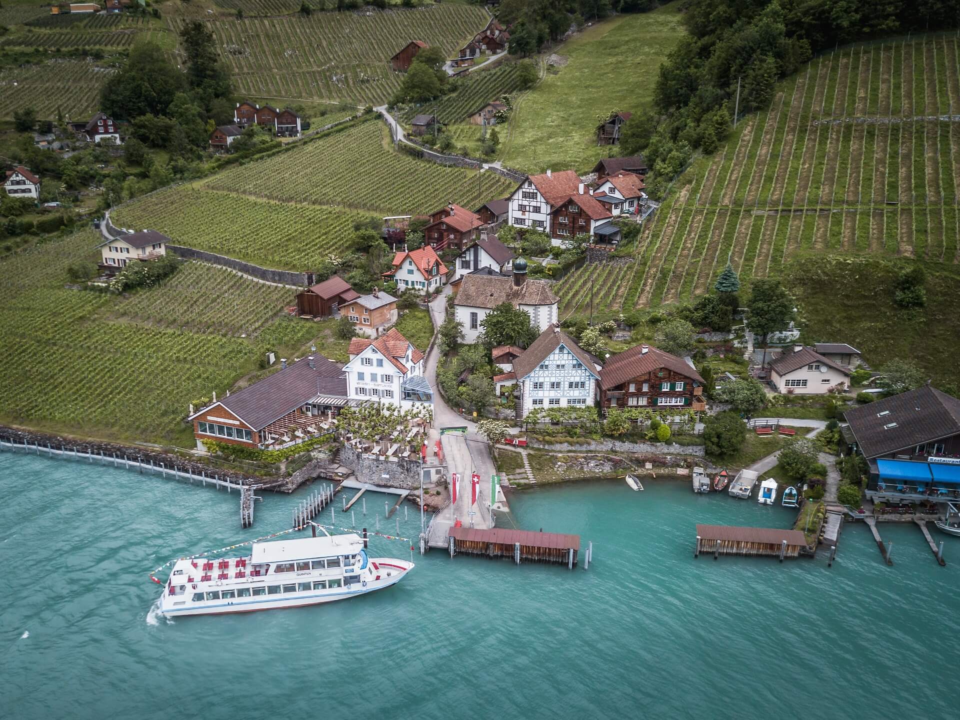The Walensee invites visitors to take a stroll, hike or boat trip, and boasts an impressive location at the foot of the Churfirsten. The tiny municipality of Quinten is a unique place by the lake that can only be reached on foot or by boat. The climate here is also quite special thanks to the sheltered location at the foot of the mountain, and as a result it is often much warmer here than it is just a few kilometres away. That’s why grapes and other plants, such as kiwis, also grow particularly well in Quinten!