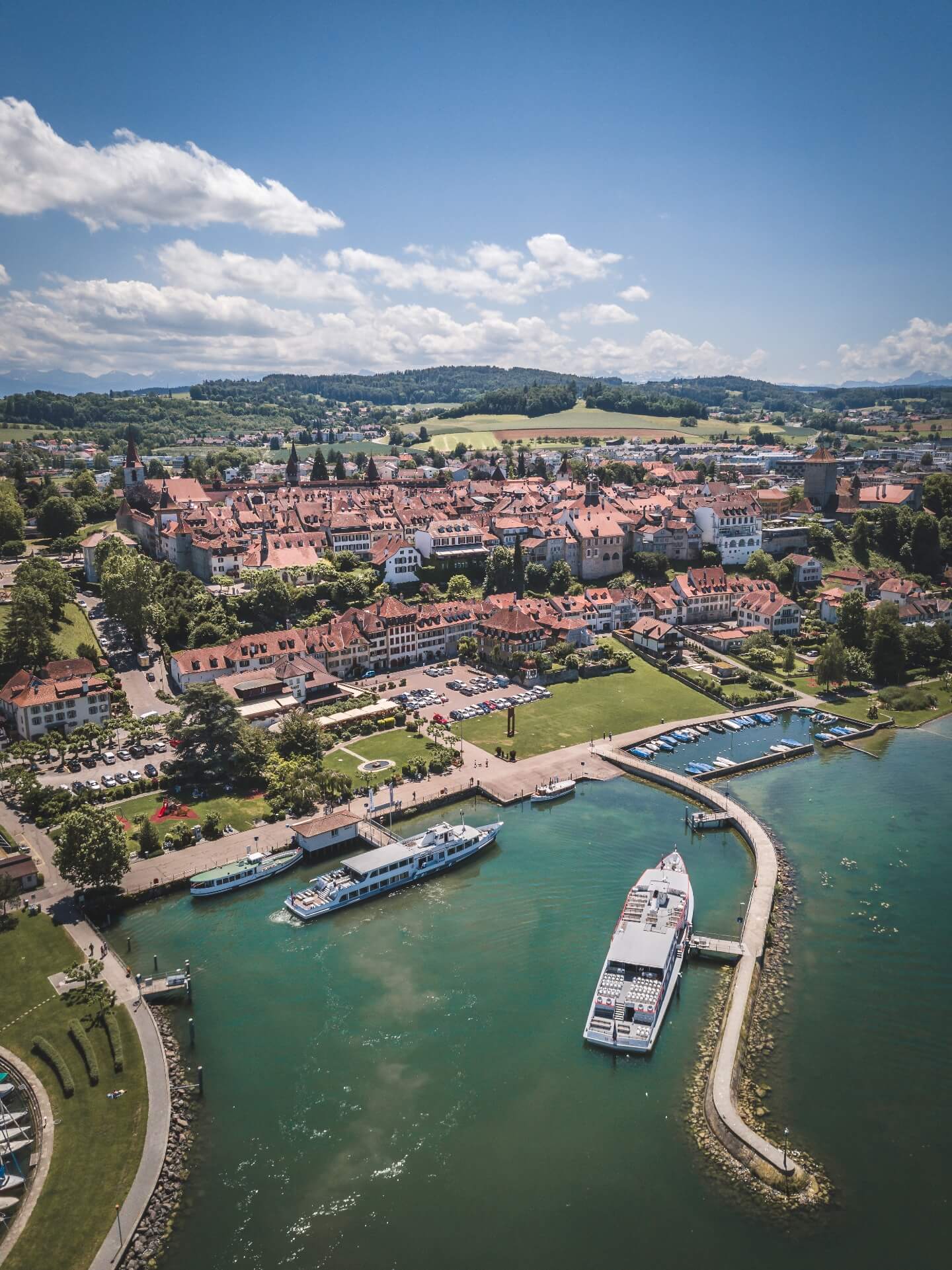 The canton of Thurgau is often somewhat underrated – and has much more to offer than you might think. It’s particularly beautiful here by Lake Constance, for example. Standing by its shore, you’ll often feel as though you could be right by the sea! And of course the view is particularly beautiful at sunset – looking out from Romanshorn, for example. One last thing: The little town by the lake also looks fantastic when photographed by a drone!