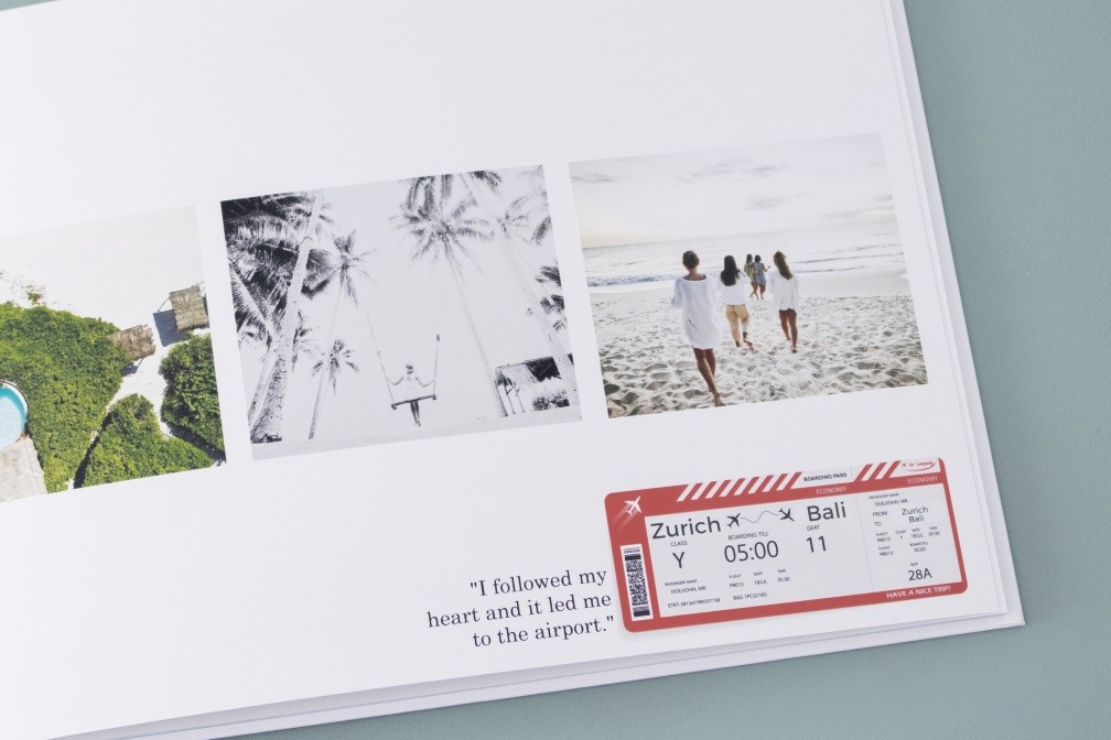 Keep your favourite holiday memories in a high-quality photo book with real premium photo paper. Thanks to the flat pages, you can view large photos on both pages without having to fold them over.