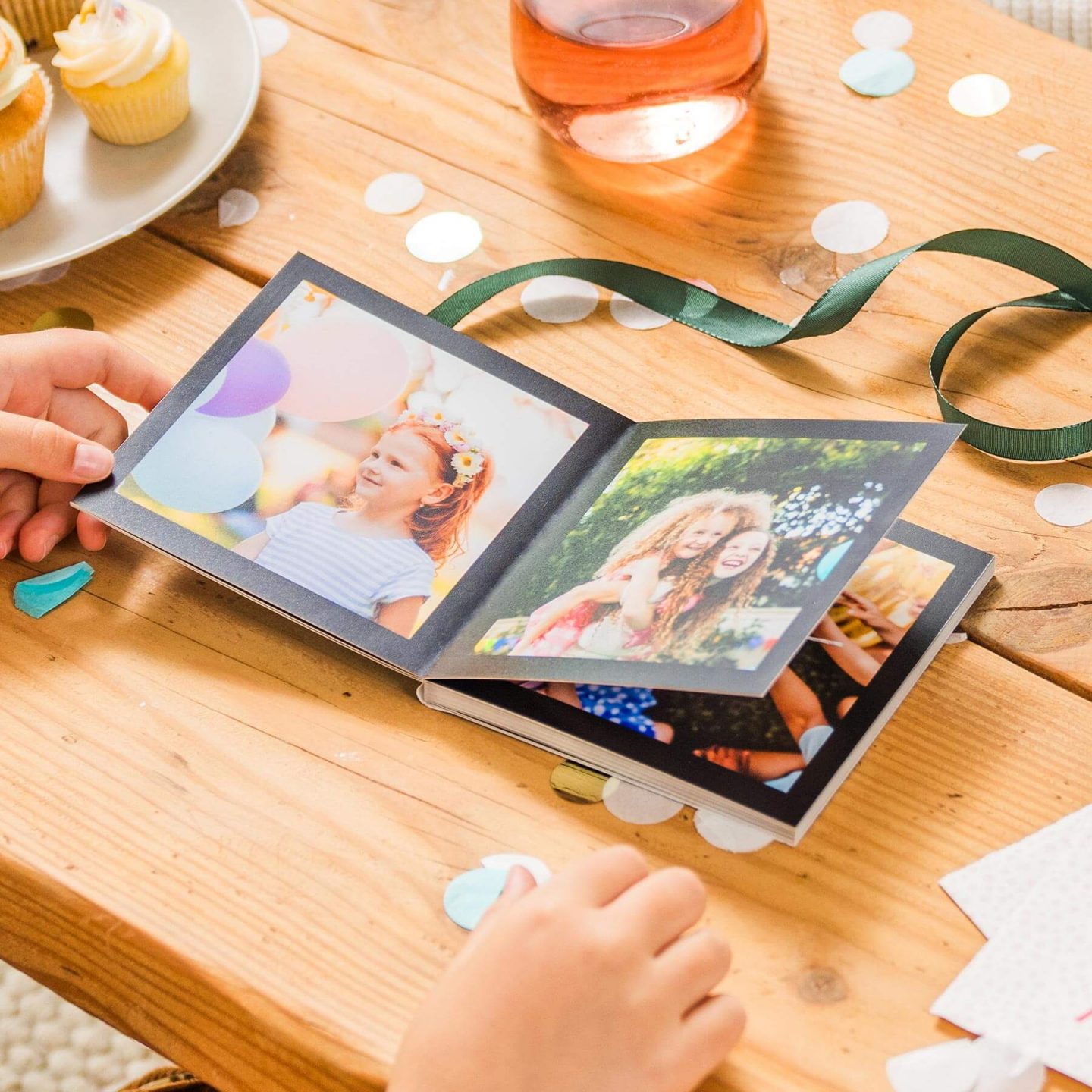 Great to use as a storage box at home or ideal for using as a gift box. Choose a matching gift box to go with your booklet and we will send your mini photo book inside the matching gift box. This way you can keep your best memories together in one place and you can look back on the good times anytime you are feeling nostalgic. The booklet is an ideal birthday present or a little something for your loved ones. If you decide to use the additional gift box, then your booklet is already nicely wrapped to give as a gift. On the edge of the box there is some space where you can write the title of the book or the name of the recipient.
