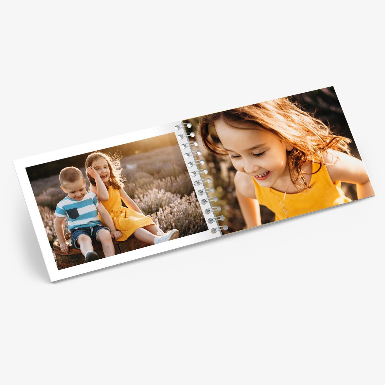 Thanks to the book being bound as a spiral binder the pages of your photo book can easily be turned. The book pages suitable for photos over both sides thanks to the flat lay pages. The robust and flexible spiral binding is long-lasting and holds the sturdy book pages securely together. This means that the Spiral Photo Book isn’t too delicate, and the book can be shared with children.