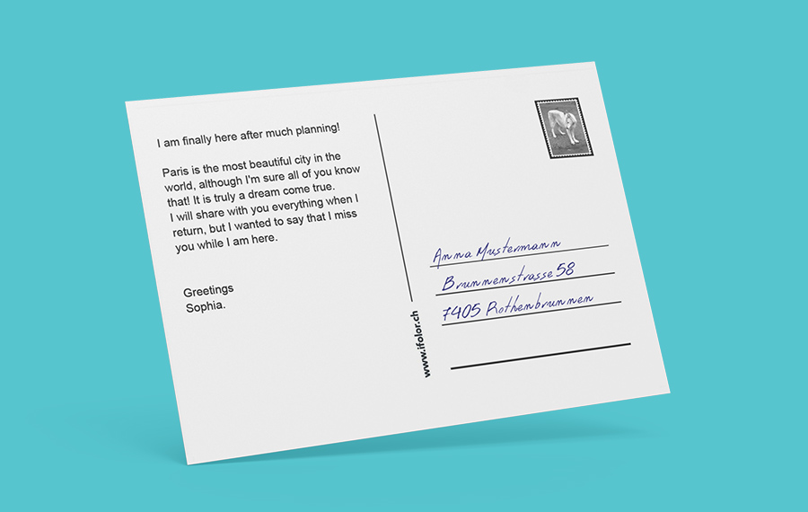 You can have your designed postcard set printed directly with text and then send it to your loved ones: Simply design the postcards with your own photos and text and order your postcard set to your home. Add the address by hand and send it by post - and your greetings are on their way.