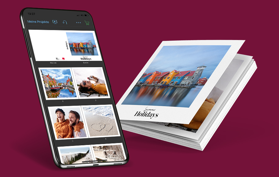 Du kannst dein Booklet im quadratischen Miniformat in wenigen Schritten schnell und leicht gestalten: Einfach die gewünschten Fotos vom Computer oder Smartphone auswählen und schon werden deine Schnappschüsse automatisch auf den Buchseiten platziert. Auf jeder Seite kannst du ein Foto und einen passenden Titel einfügen. Für dein Booklet stehen dir verschiedene Layouts zur Verfügung: Vollflächige Fotos, weisser Rand, schwarzer Rand oder leicht verschwommener Rand.