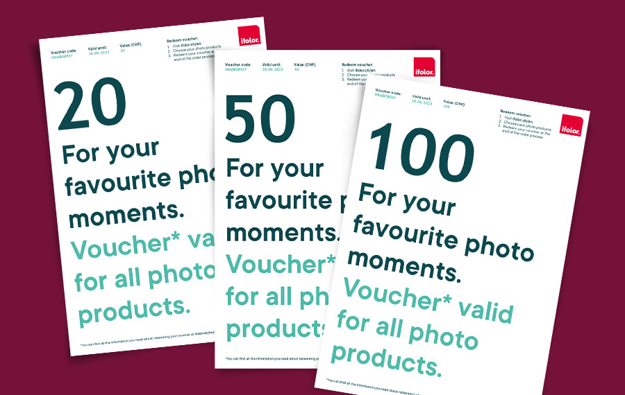 Wähle 20, 50 oder 100 als Betrag für den ifolor Gutschein aus. Ist der Wert des Gutscheins höher als der Gesamtbetrag der Bestellung, so wird das Restguthaben dem Kundenkonto gutgeschrieben. Das Restguthaben wird automatisch bei einer nachfolgenden Bestellung in Abzug gebracht. Der Beschenkte kann also mehrere Bestellungen tätigen.