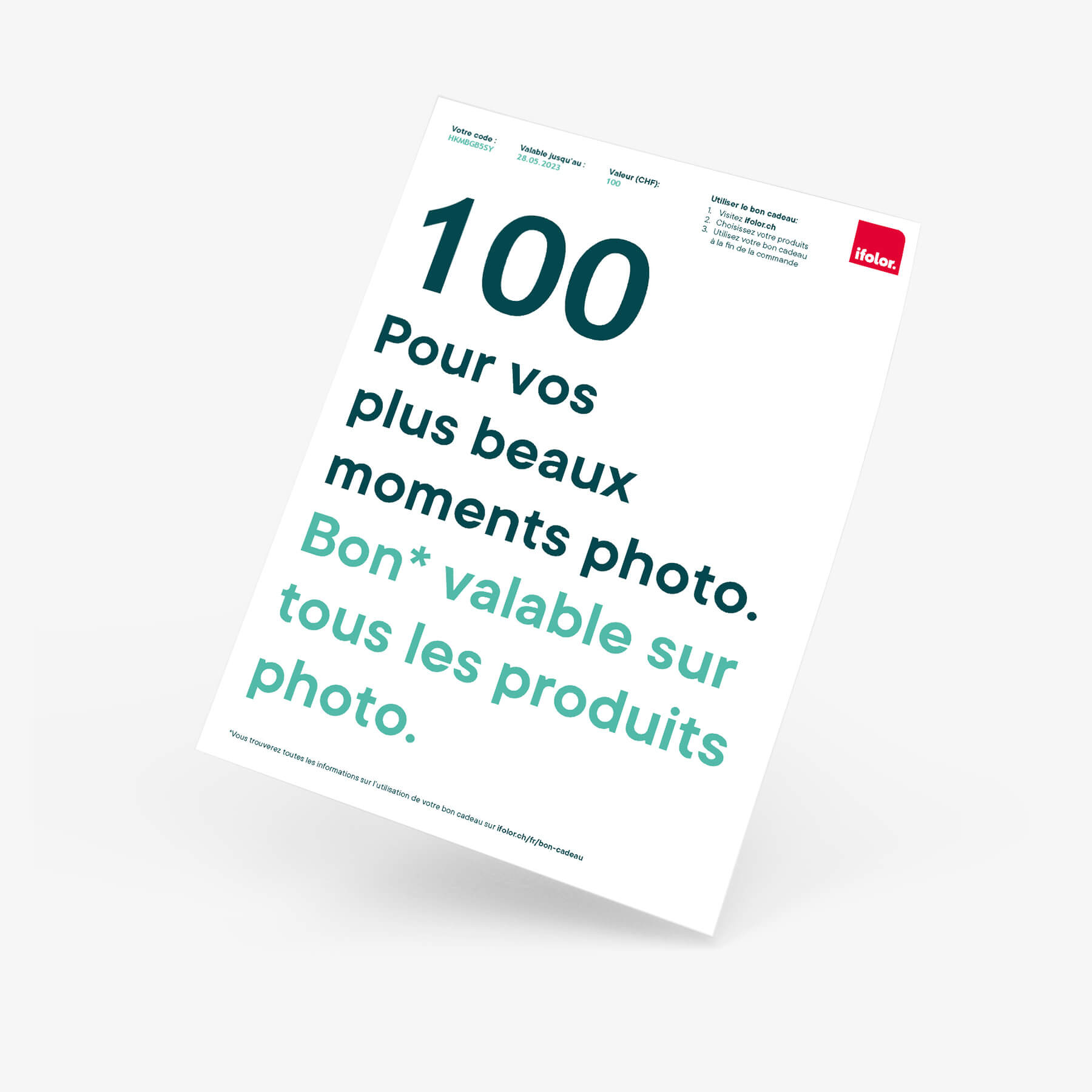 Commandez le Bon cadeau ifolor au montant de 20, 50 ou 100 et offrez-le à vos proches. Si la valeur du bon cadeau ne suffit pas à couvrir le montant de la commande, il est possible de choisir l’un des autres modes de paiement que nous proposons pour régler la différence. Le bénéficiaire puisse effectuer plusieurs commandes.
