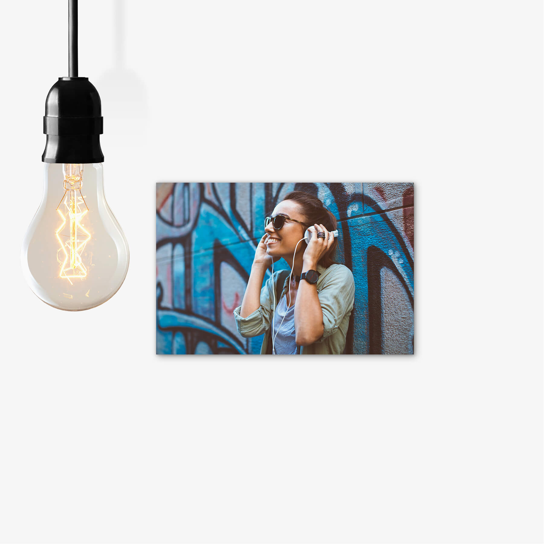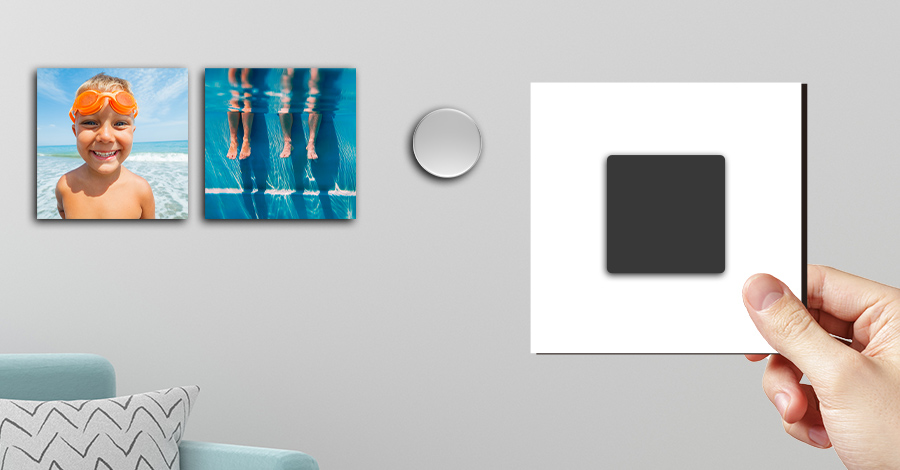 La mini décoration murale est disponible dans cinq formats : 10x10 cm, 10x15 cm, 15x15 cm, 15x20 cm et 20x20 cm. Avec les différentes dimensions, réalisez une décoration ayant un aspect de collage ; ou si vous préférez une décoration murale homogène, vous pouvez privilégier un seul format. Laissez libre cours à votre imagination afin que votre mur de photos magnétiques vous ressemble !