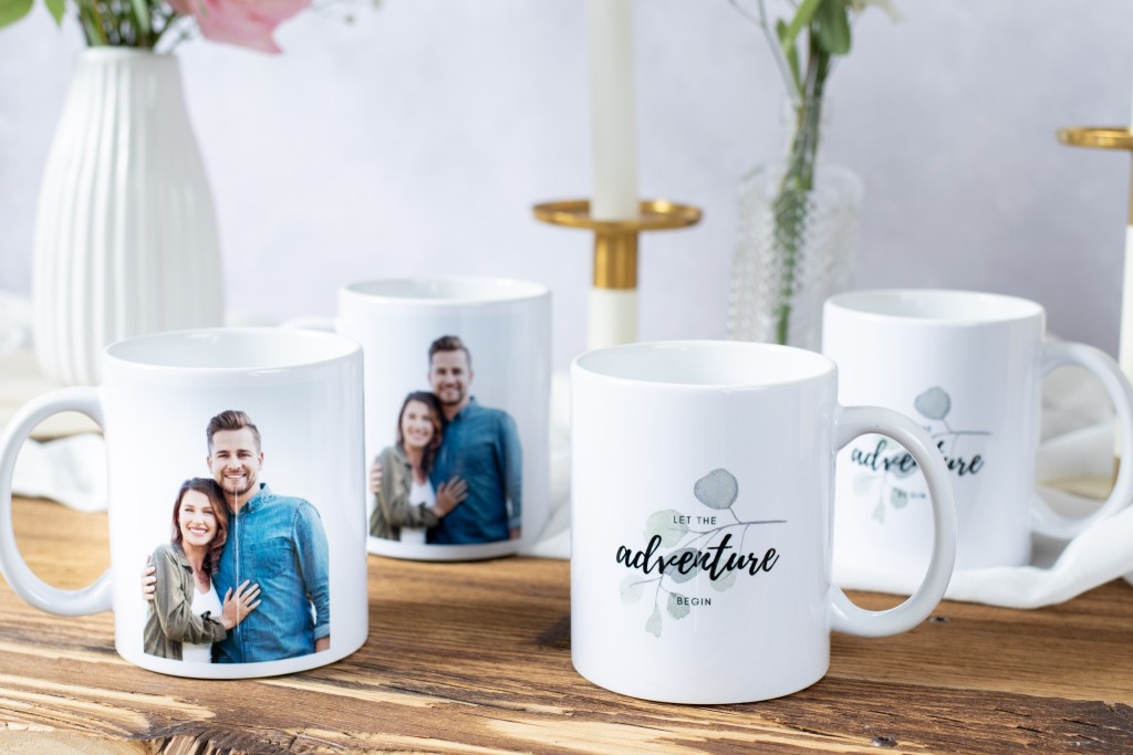 Qu’elle soit décorée d’une photo des mariés ou d’une phrase, une tasse de mariage personnalisée et conçue avec amour est un cadeau unique et pratique. Vous pouvez créer le mug comme bon vous semble, par exemple avec un cliché de vous deux: notre éditeur en ligne vous laissera le choix de conception parmi de nombreux modèles. Bien entendu, vous pouvez aussi utiliser votre propre motif ou thème de mariage pour décorer les tasses. Il suffit de télécharger l’image sous forme de fichier JPG sur notre site web et de le travailler sur votre Mug photo. Il est encore plus facile de concevoir les Mugs photo avec notre programme ifolor Designer. En plus des différentes polices de caractères, vous pouvez également agrémenter le tout de cliparts.