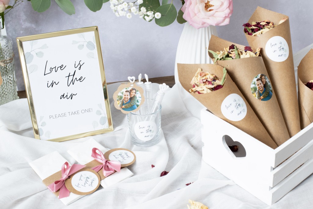 Les amandes de mariage se laissent aussi décorer avec style avec des autocollants photo.
