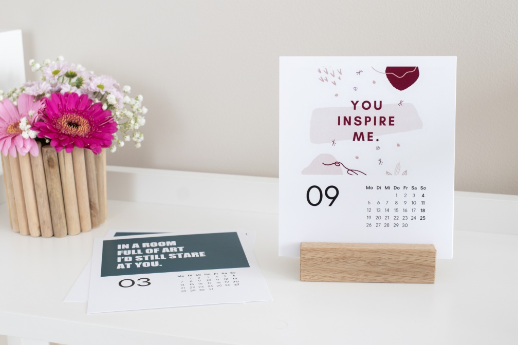 Le calendrier de bureau avec support en bois est parfait pour offrir à vos proches une année pleine de compliments et d’énergie positive! Personnalisez chacune des douze cartes mensuelles d’un compliment ou de quelques mots doux, pour que le destinataire puisse lire et apprécier vos messages. Avec son élégant support en bois, le calendrier de bureau peut être placé partout et constitue donc un accessoire pratique et décoratif pour le lieu de travail.