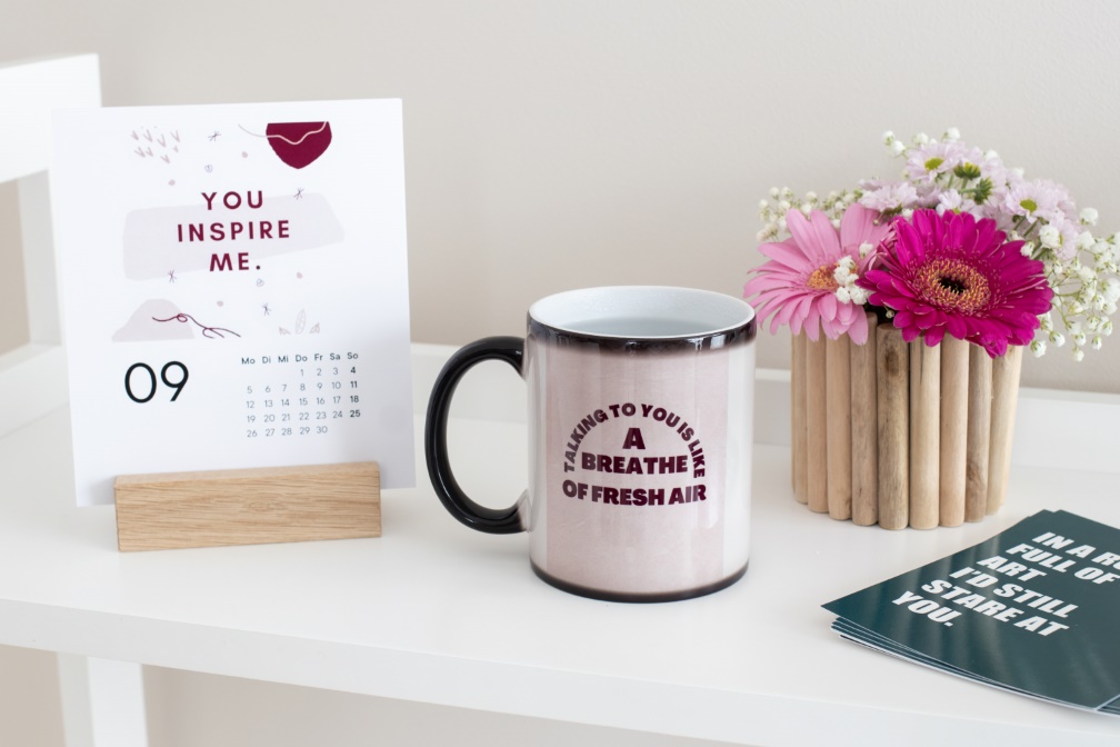 Découvrez dans notre article de blog des idées et de l’inspiration pour écrire des messages d’amour sur un Mug photo: Lettering, petits chefs-d’œuvre, arts graphiques…