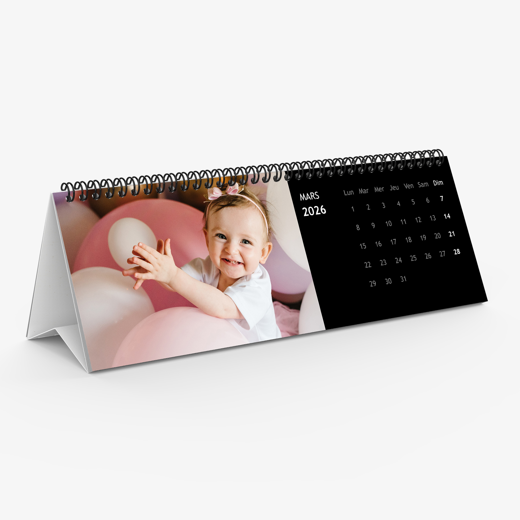 Le calendrier de bureau ifolor ajoute votre touche personnelle sur votre bureau, à votre lieu de travail ou à la maison. Grâce à son socle solide en carton, il tient bien en place et vous pourrez le placer là où il vous sera facile d’y jeter un rapide coup d’œil. Vous pouvez également choisir entre un design blanc ou noir pour votre calendrier.