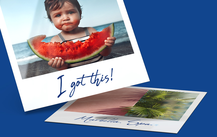Comme les tirages des anciens appareils photo instantanés, la bordure blanche inférieure de la photographie rétro est légèrement plus large que les bords qui l'entoure. Cela vous donne suffisamment d'espace sur votre Retro Prints pour écrire des notes, des noms ou des dates sur vos photos. Un stylo indélébile est le mieux adapté pour cela, mais vous pouvez aussi écrire avec un stylo à bille en veillant à ne pas faire de bavures.