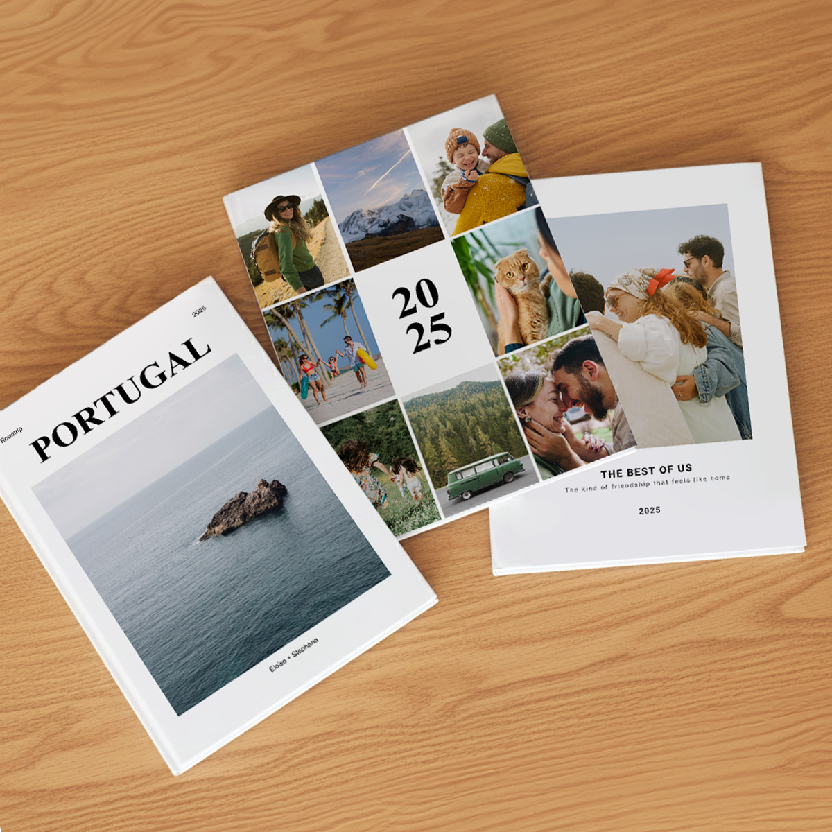 Le moment de faire une pause et de regarder en arrière. Immortalisez les souvenirs qui ont rendu votre année unique avec l’un de nos trois nouveaux designs de couverture pour livre photo. Pour vous ou comme cadeau pour vos proches.