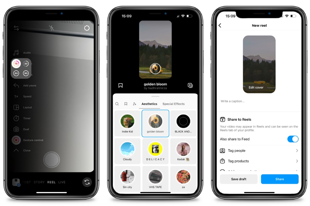 - Länge von Reels: mindestens 0.7 Sekunden, maximal 90 Sekunden