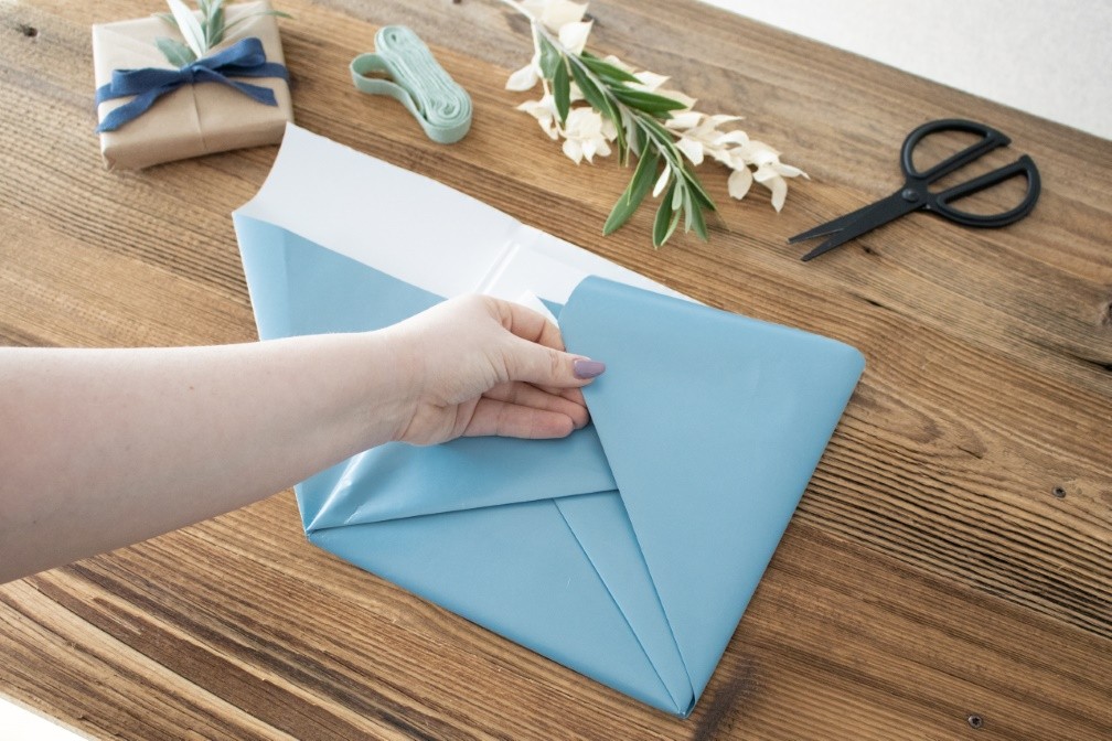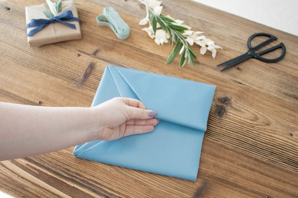 Geschenk mit Kimono-Technik einpacken – Schritt 2.