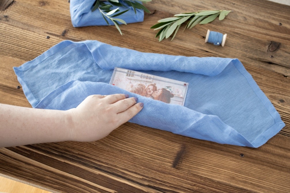 Fotoprodukt in ein hübsches Stofftuch einwickeln.