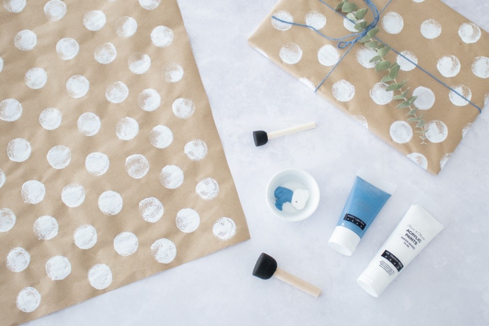 Für Familien bietet sich dies auch hervorragend zum Geschenkeinpacken mit Kindern an. So können die Kleinen das Geschenkpapier für ihr Geschenk an Oma und Opa selbst gestalten und z. B. mit den Fingern bunte Tupfen darauf verteilen.