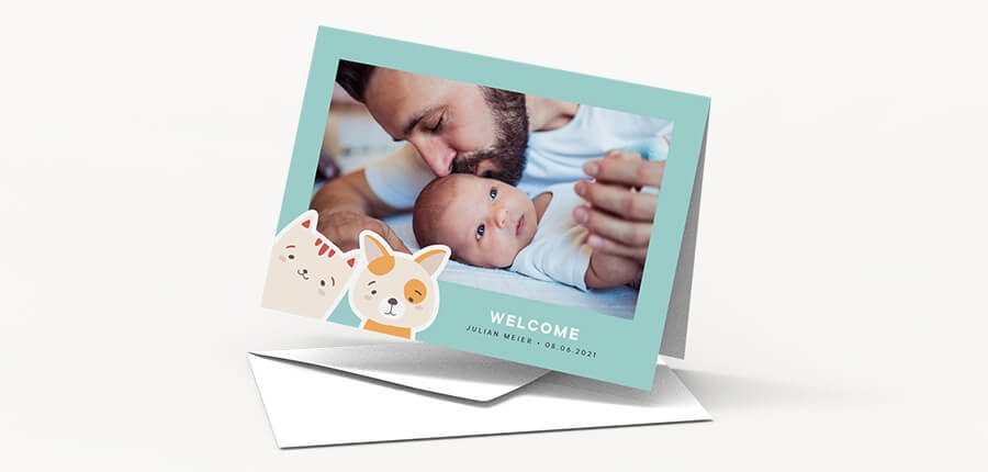 Sicuramente vorrai condividere con tutti la lieta notizia del nuovo arrivato. Non scegliere una cartolina a caso per dare la notizia ma realizza una cartolina di auguri personale che celebri la bella notizia.