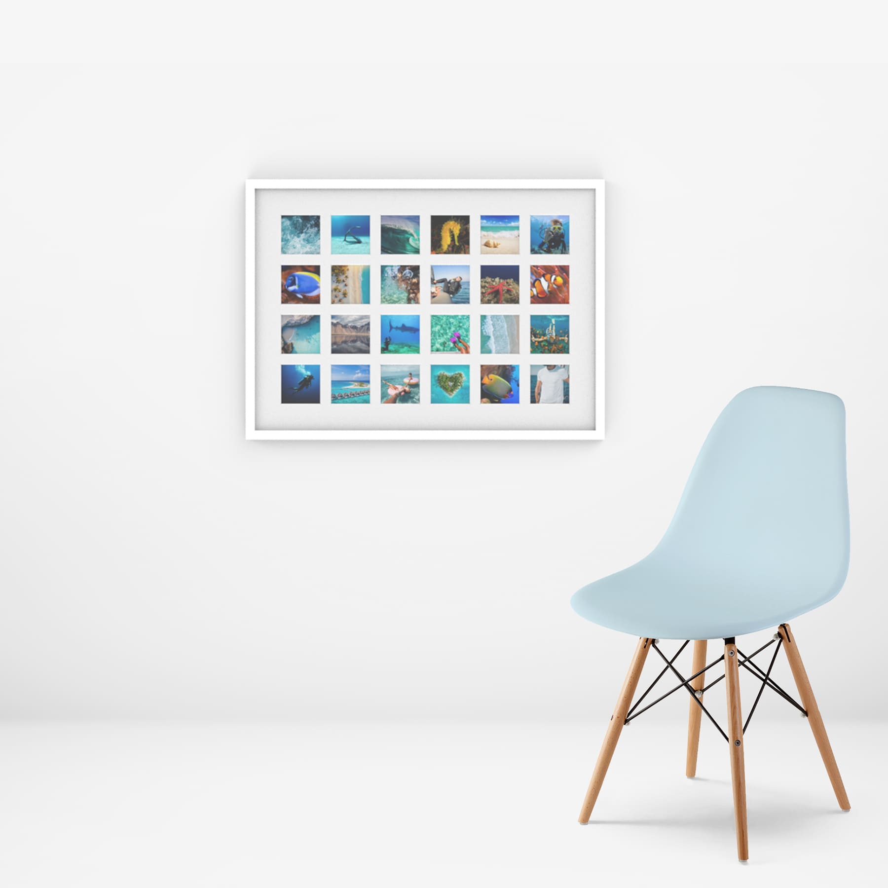 Cornice da galleria per foto collage 50 x 70 cm • Orizzontale • Bianco • 24 foto