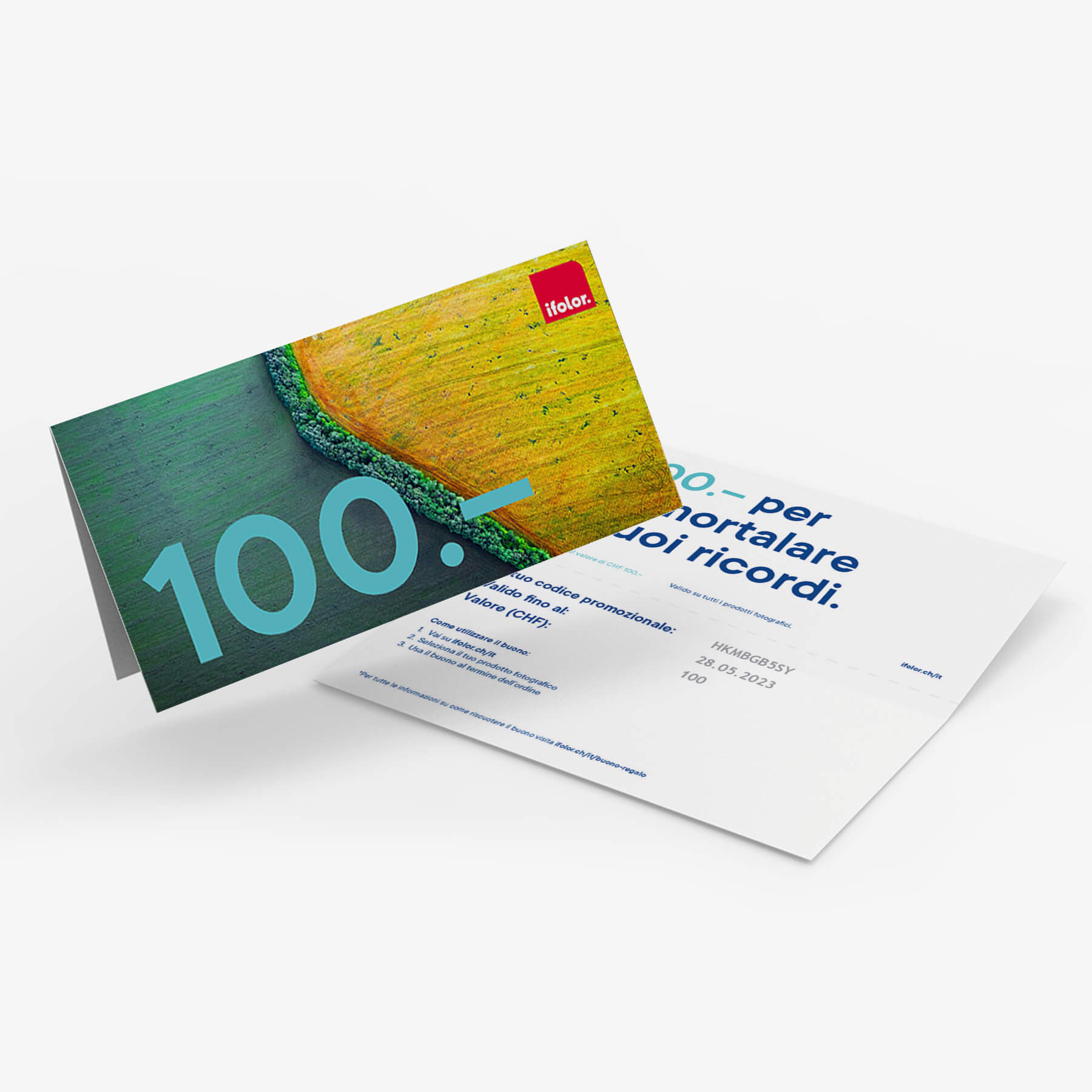 Ordina il buono ifolor da 20, 50 o 100 per fare un regalo speciale ai tuoi cari. Se il valore del buono è superiore all’importo totale dell’ordine, il credito residuo sarà accreditato sul tuo conto cliente e sarà automaticamente detratto da un ordine successivo. Il destinatario possa effettuare più ordini.