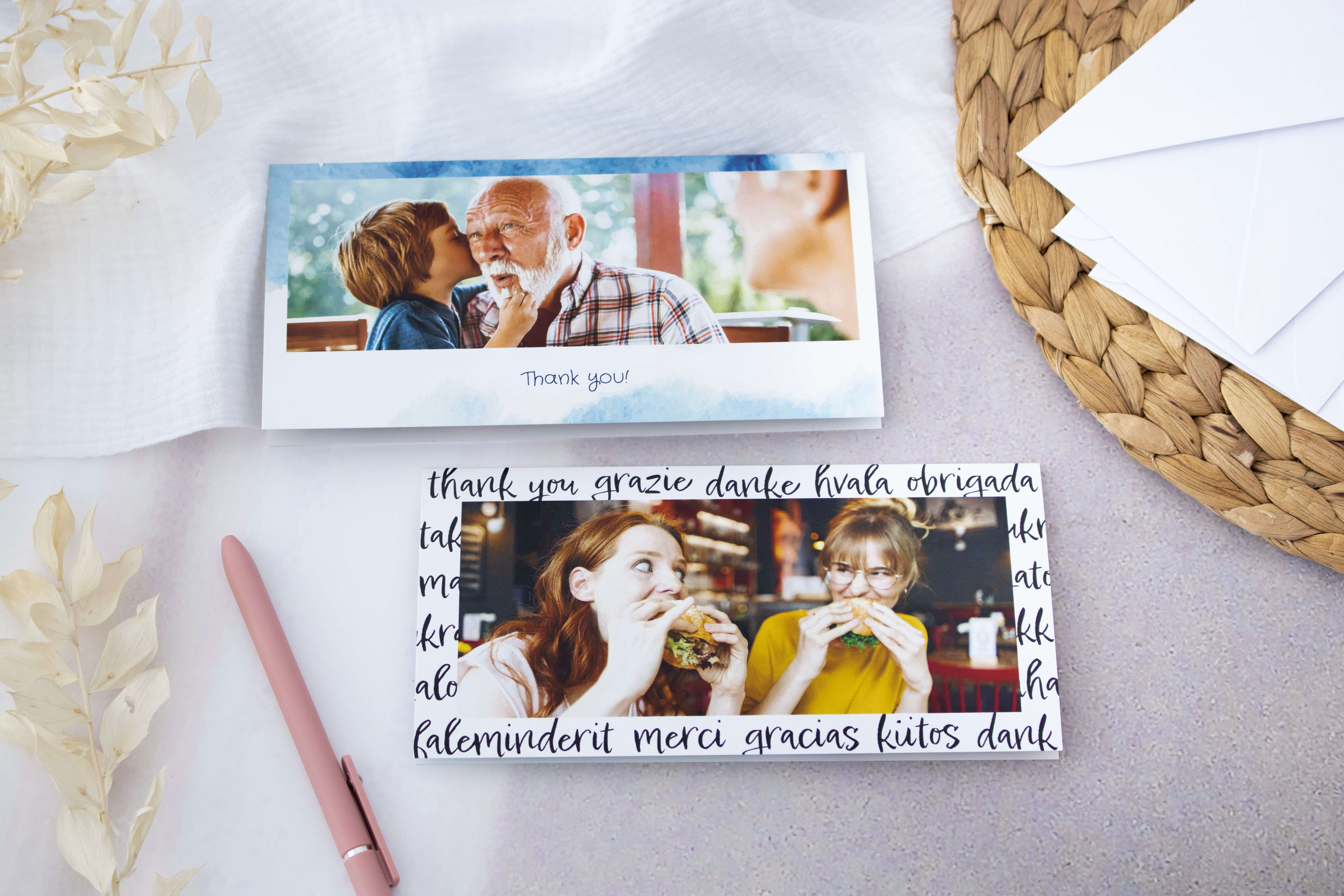 - Utilizza il formato di Cartoline di auguri nel pratico set da 10 se vuoi inviare più di una cartolina di ringraziamento.