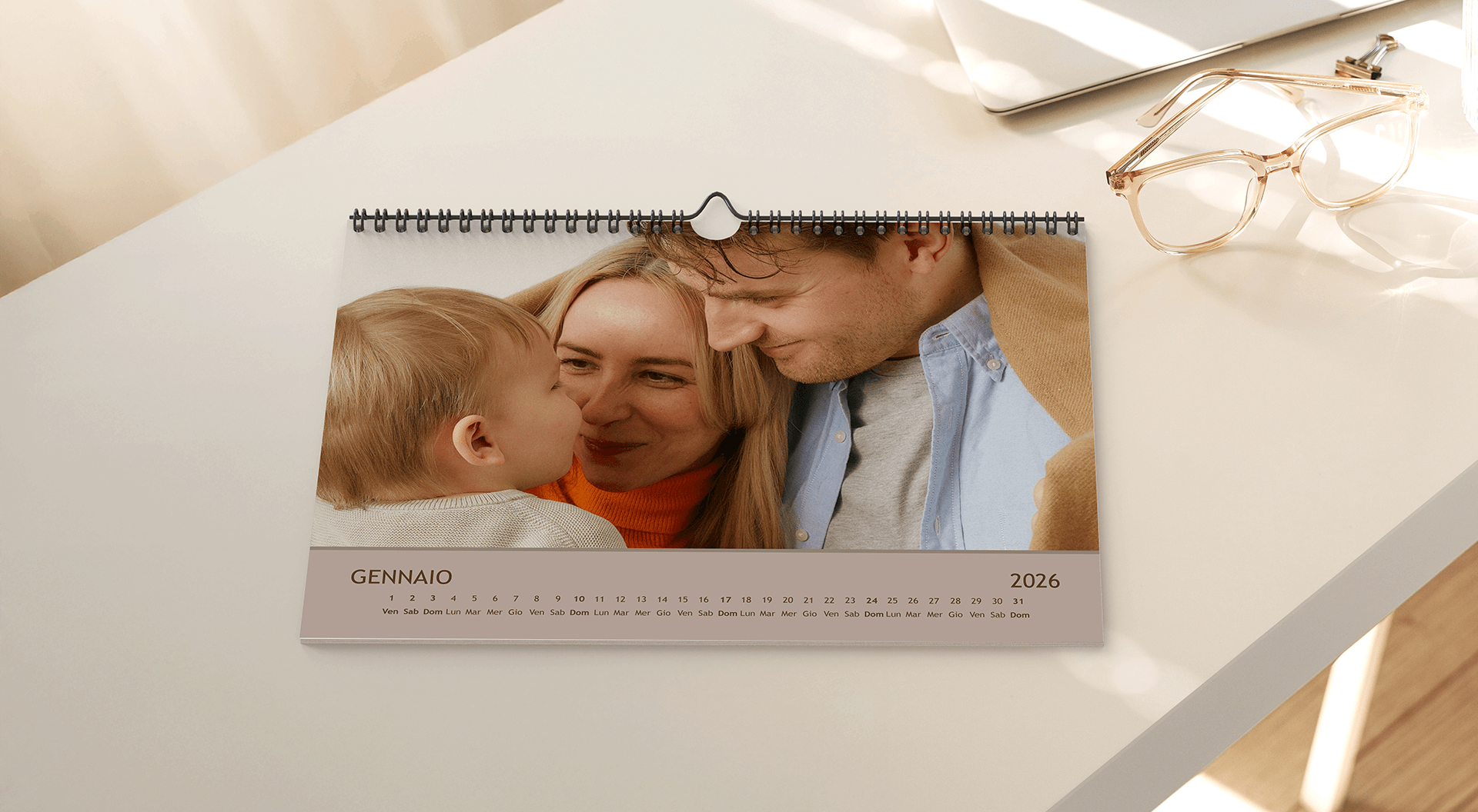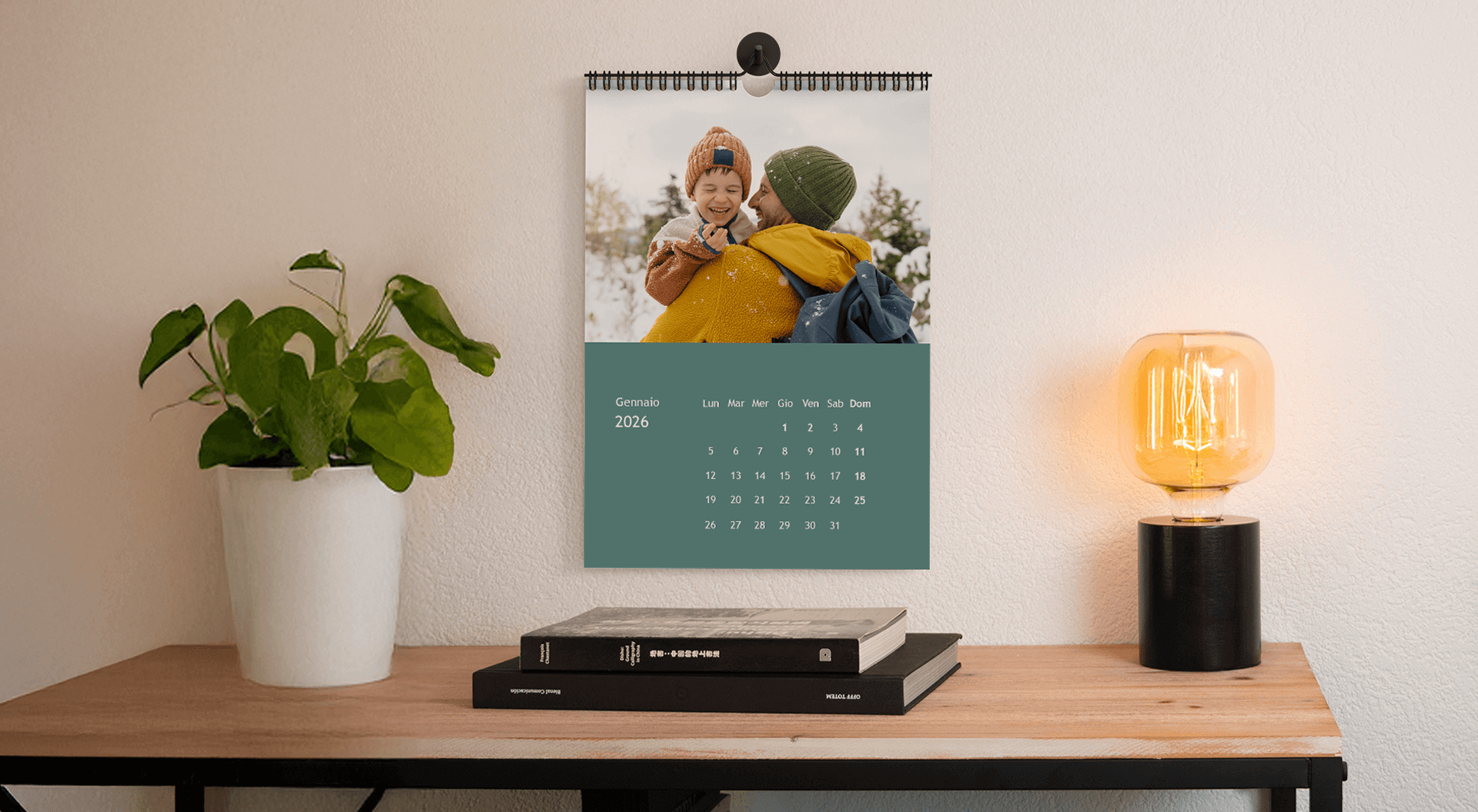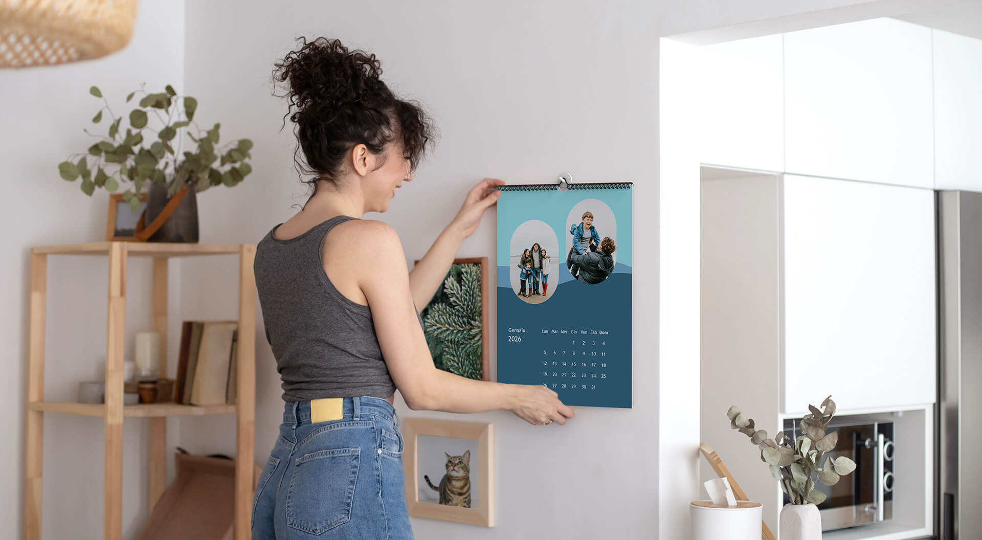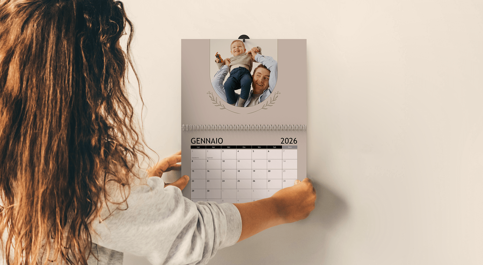 I calendari da parete e i pianificatori mensili sono molto popolari. Uno degli aspetti più belli della creazione del tuo calendario è poterlo riempire con foto che ti regalano particolare gioia. Foto di famiglia, ricordi di viaggio, tappe importanti della vita, disegni dei bambini: ogni pagina diventa un piccolo promemoria di ciò che conta davvero. Sia nel calendario da parete sia nel pianificatore mensile puoi scegliere una foto per ogni mese oppure inserirne diverse. In questo modo crei un ritmo annuale ricco di gioia, nostalgia e ispirazione.