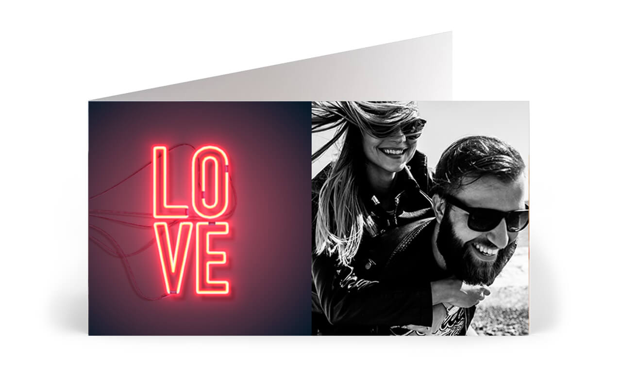 Se vuoi creare un collage extra-large che possa poi essere incorniciato o se vuoi includere una bella poesia nel tuo biglietto di San Valentino, la Cartolina maxi piegata è perfetta. Il formato A4 ti offre tanto spazio per le foto più belle con la tua metà.