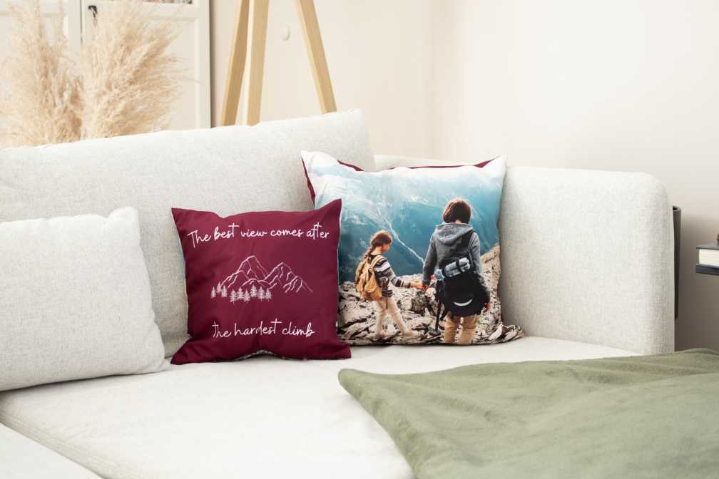Se stai cercando un'idea un po' più insolita per mettere in mostra i tuoi migliori ricordi di viaggio o i momenti preferiti con la famiglia, le coperte e i cuscini personalizzati in salotto (o in camera da letto) sono un'altra grande idea. Puoi così creare elementi decorativi che si abbinano perfettamente ai tuoi interni e che allo stesso tempo invitano al relax.