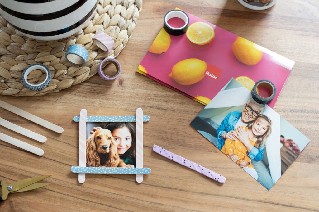 Realizza in compagnia dei tuoi bambini delle cornici portafoto originali per la Festa della Mamma con i bastoncini dei gelati per mettere in risalto le vostre foto preferite. Questa idea creativa è facile da realizzare anche per i bimbi più piccoli, dai 3 anni in su.