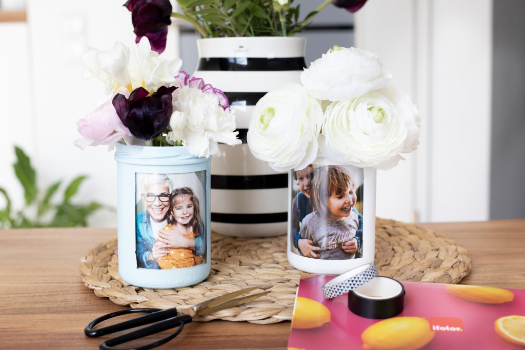 Un bel mazzo di fiori freschi è sempre un regalo azzeccato per la Festa della Mamma. Per valorizzare maggiormente i fiori e conservarli a lungo, puoi creare con l’aiuto del tuo bambino un bel vaso decorato con foto.