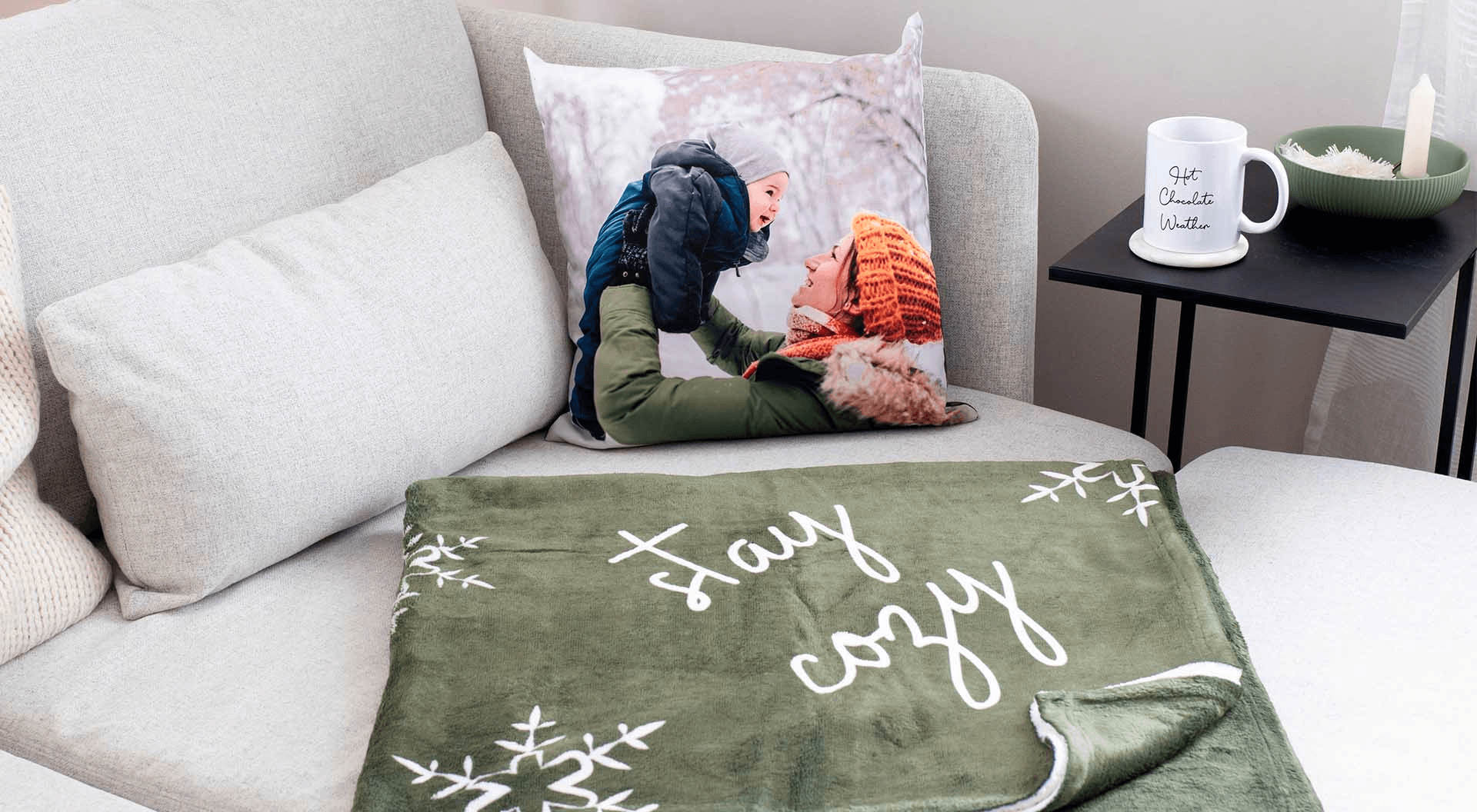 Una coperta calda e un cuscino con foto abbinato sono perfetti come ricordo delle ultime vacanze natalizie, da tenere in casa o da portare con sé per le prossime vacanze sulla neve. Con i cuscini e le coperte personalizzati puoi dare un tocco di allegria alla tua casa durante il periodo invernale.