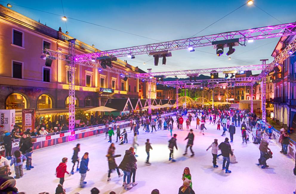 Nel periodo natalizio la Piazza Grande di Locarno viene trasformata in una grandissima pista di pattinaggio artificiale grazie al Locarno On Ice. I visitatori qui possono respirare attivamente l’atmosfera natalizia e pattinare con i bambini o amici, circondati da un mare di luci. All’esterno della pista da pattinaggio si trova un tappeto rosso, sul quale si trovano piccole casette di legno dai tetti rossi e bar. Qui potrai rilassarti dopo aver pattinato e goderti un aperitivo per finire in maniera piacevole la giornata. Non mancano live-act e accompagnamenti musicali. Un’atmosfera unica da non perdere!