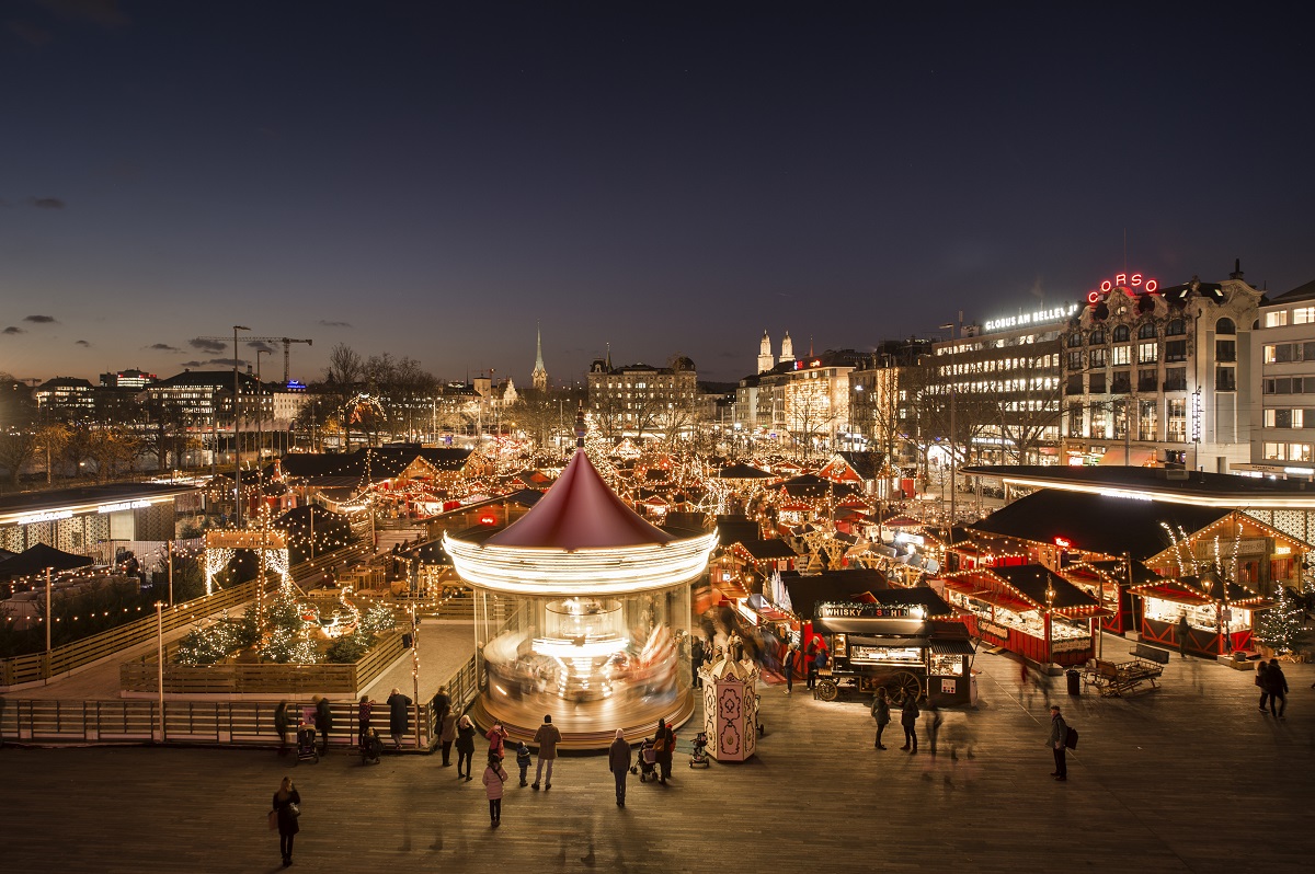 Se vuoi vivere la magia del Natale di Zurigo, il posto migliore da visitare è il “Zürcher Wienachtdorf”, il villaggio natalizio di Bellevue. Una delle attrazioni più amate è la pista da pattinaggio, che vanta una superficie di ben 700 m2. Qui puoi pattinare assieme alla tua famiglia e ai tuoi amici e provare il curling. Il Wienachtsdorf ospita più di 100 bancarelle dai caratteristici tetti rossi e che ti stupiranno per i prodotti di artigianato sia tradizionale che moderno. In alcuni stand è addirittura possibile creare le proprie opere d'arte sotto la guida degli artisti – un regalo perfetto per i tuoi cari. Dal punto di vista gastronomico, il mercatino ti accoglierà con una vasta gamma di specialità internazionali tutte da provare. Nello chalet “Klosters”, ad esempio, ti aspetta un'atmosfera accogliente, dove gustare diverse varianti di fonduta accanto al camino. Il Zürcher Wiehnachtsdorf offre infine un ricco programma d'intrattenimento per grandi e piccini.