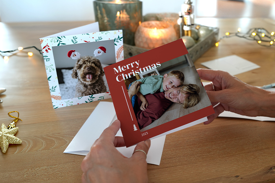 Utilizza le foto più belle dell'anno, sia che si tratti delle tue avventure migliori o di piccoli momenti con i tuoi cari, e invia auguri personalizzati che vengono dal cuore. Rendete unico questo Natale mostrando ai vostri amici e familiari quanto sono importanti per voi!