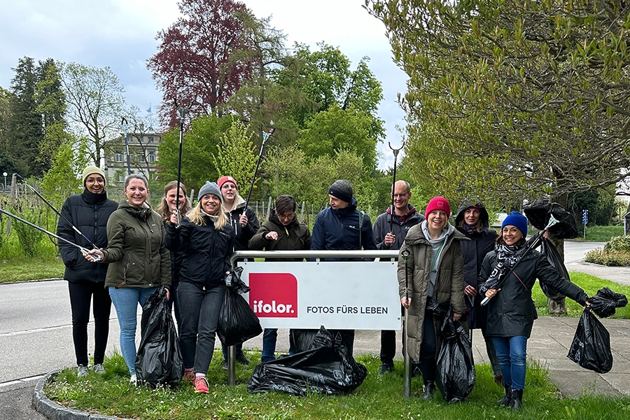 In occasione della Giornata della Terra, che si è svolta il 22 aprile 2024, abbiamo lanciato la nostra prima iniziativa Clean Up Day a Kreuzlingen. Questa iniziativa fa parte del nostro impegno costante per la responsabilità sociale di ifolor. La consapevolezza ambientale è particolarmente importante per noi in quanto azienda produttrice e consumatrice di risorse. Crediamo inoltre che anche piccole misure possano portare a cambiamenti significativi. Nel nostro tentativo di compensare il nostro impatto sull'ambiente, un totale di 15 dipendenti ha partecipato alla campagna Clean Up e ha raccolto i rifiuti nelle vicinanze della sede centrale di ifolor a Kreuzlingen.