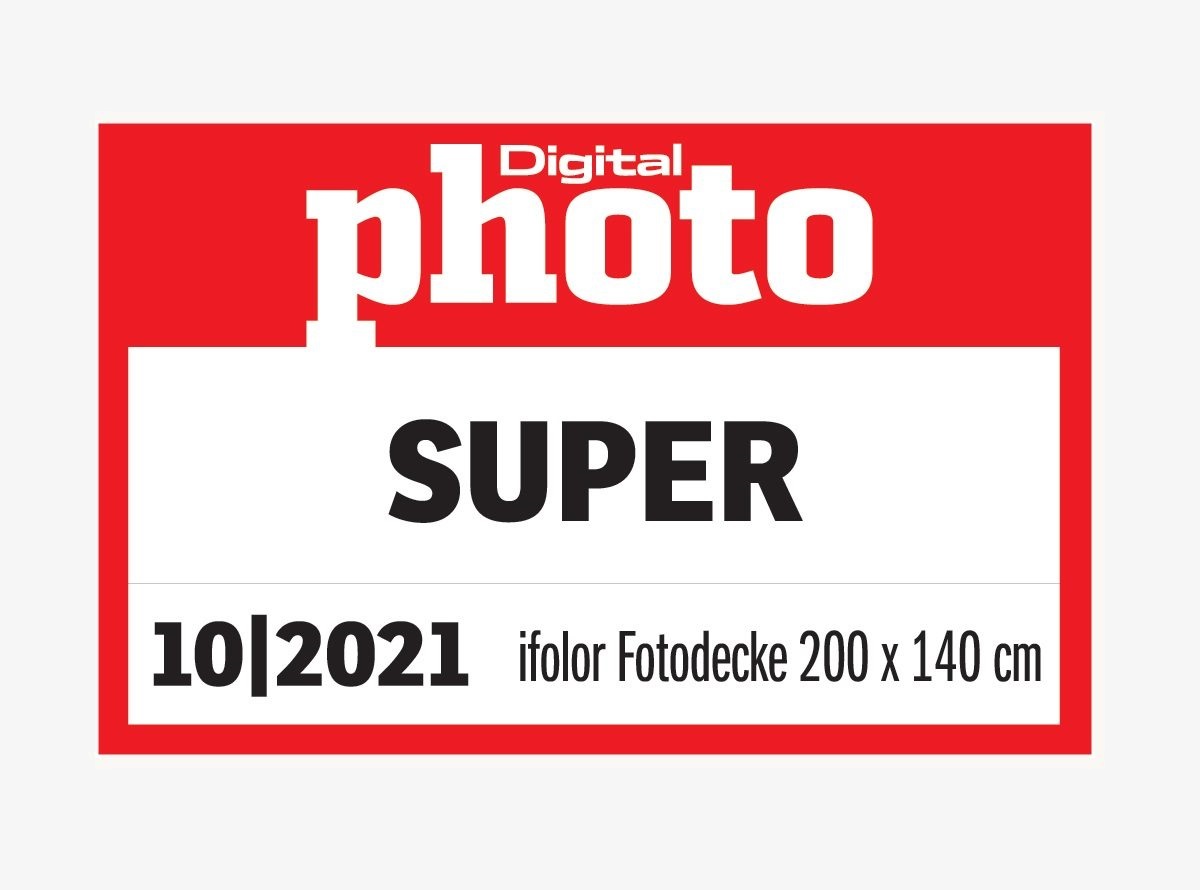 Das Magazin DigitalPHOTO testet in seiner Ausgabe 10/21 total vier Spezialprodukte von Fotodienstleistern. Die Fotodecke von ifolor erhält nach dem Test das Prädikat «SUPER». Besonders pointiert wird, dass das Druckbild scharf ist und die Farben knackig sind.
