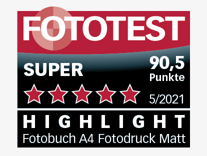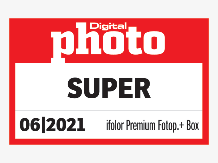 Im Fotobuchtest des Fototests Ausgabe 05/2021 ist ifolor mit dem Produkt Fotobuch, A4 quer, Einband matt, Innenseiten glänzend, vertreten. Erzielt wird das Testprädikat «SUPER» mit einer Gesamtbewertung von 90/100 Punkten. Der matte Einband ist von sehr hoher Qualität. Die Farben sind satt mit sehr guten Verläufen und die Belichtung ist kontrastreich..