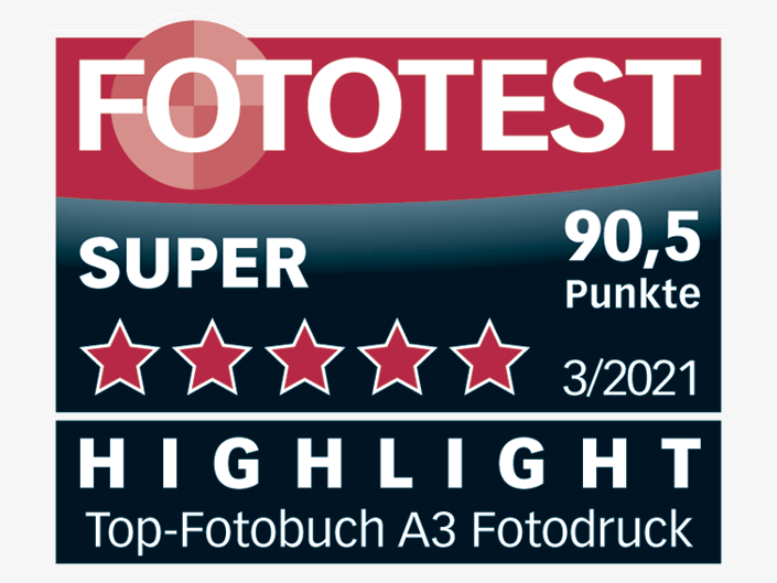 Im Fotobuchtest des Fototests Ausgabe 03/2021 ist ifolor mit den Produkten Fotobuch Premium Fotopapier im Format A3 und 28x28 cm vertreten. Beide Produkte erhalten das Testurteil «SUPER», 5/5 Sterne und das Testprädikat «HIGHLIGHT».