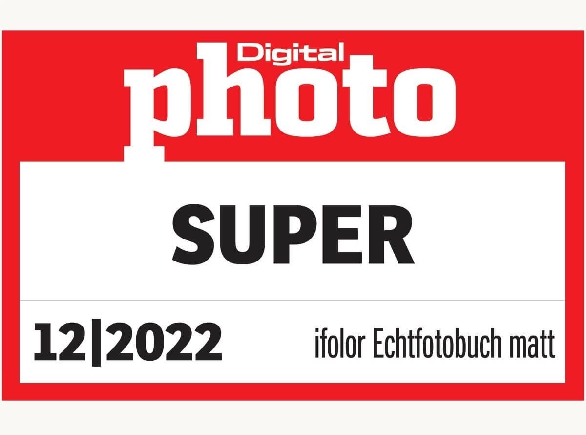 In der Digitalphoto Ausgabe 12/2022 wird ein grosser Test von sechs hochwertigen Echtfotobüchern durchgeführt. ifolor ist darin auch mit dem Produkt Fotobuch Premium Fotopapier, A4 hoch, vertreten. Das Testprädikat «SUPER» mit einer Gesamtbewertung von 4.5/5 Sternen wird erzielt. Besonders betont wird hier die ausgezeichnete Haptik sowie die einfache Gestaltungssoftware.