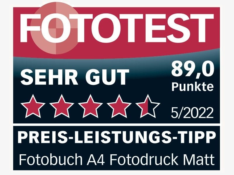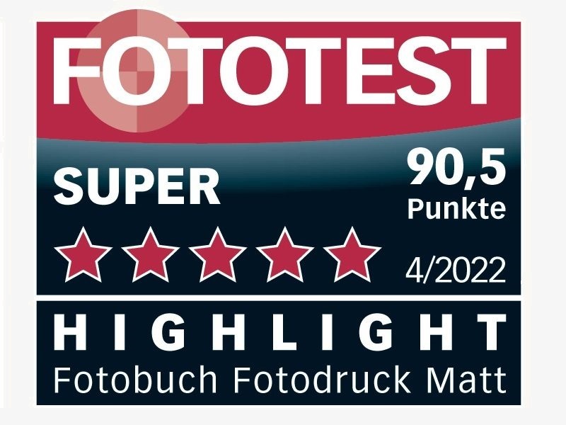 Zum wiederholten Mal wurde das Fotobuch von ifolor getestet in der Fototest Ausgabe 05/2021. Untersucht wurde das Fotobuch, A4 quer, Einband matt, innenseite matt. Erzielt wird wieder das Testprädikat «SUPER» mit einer Gesamtbewertung von 90.5/100 Punkten. Der Einband ist schön und mit eldem Vorsatzpapier ausgestattet. Die Farbverläufe und Schärfe kommen natürlich zu Geltung.