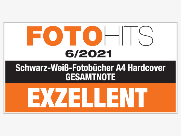 FOTO HITS Nr. 6/2021 überprüft 8 Anbieter im Bereich Echtfotobücher mit dem Fokus auf "Schwarz-Weiss Fotografie". Das ifolor Fotobuch Premium Fotopaper, A4 erhält die Wertung «EXZELLENT». Überzeugen kann das Fotobuch von ifolor mit der sauberen Verarbeitung und der guten Bildwiedergabe.