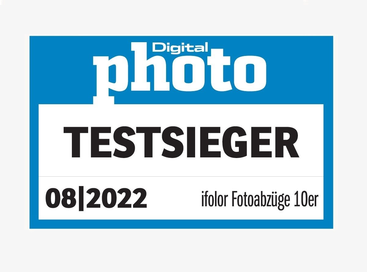 Erneut belegt ifolor im Fotoabzüge-Test der Zeitschrift Digitalphoto Ausgabe 08/2022 den ersten Platz. Mit der schnellen Lieferung, Top-Qualität und den verschiedenen Bestellmöglichkeiten, via App oder online, schafft es ifolor zum wiederholten Mal zum Testsieger.