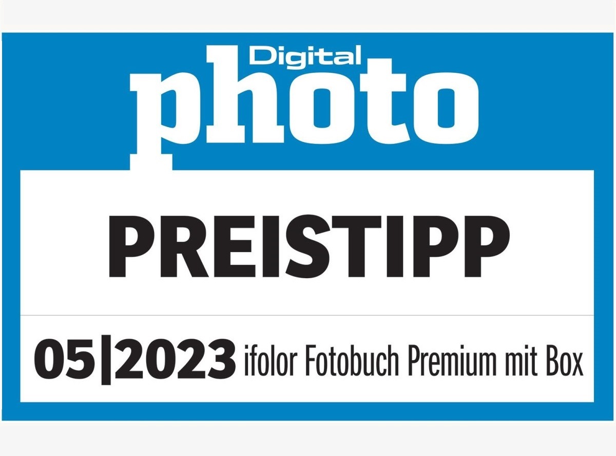 In der Digitalphoto Ausgabe 05/2023 wird ein grosser Test von sieben hochwertigen Fotobuchvarianten durchgeführt. ifolor ist darin auch mit dem Produkt Fotobuch Premium mit Box vertreten. ifolor erhält das Testprädikat «PREISTIPP» mit einer Gesamtbewertung von 4.5/5 Sternen. Speziell hervorgehoben wird die sehr gute Druck- und Verarbeitungsqualität.