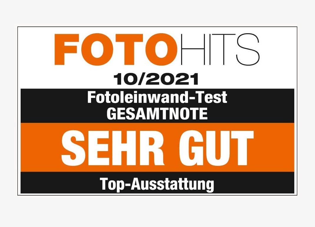 FOTO HITS Nr. 10/2021 überprüft 6 Anbieter im Bereich Fotoleinwände. Die ifolor Fotoleinwand erhält die Wertung «SEHR GUT». Durch die glattere Oberfläche eignet sich die Leinwand von ifolor vor allem gut für Bilder mit vielen feinen Details.