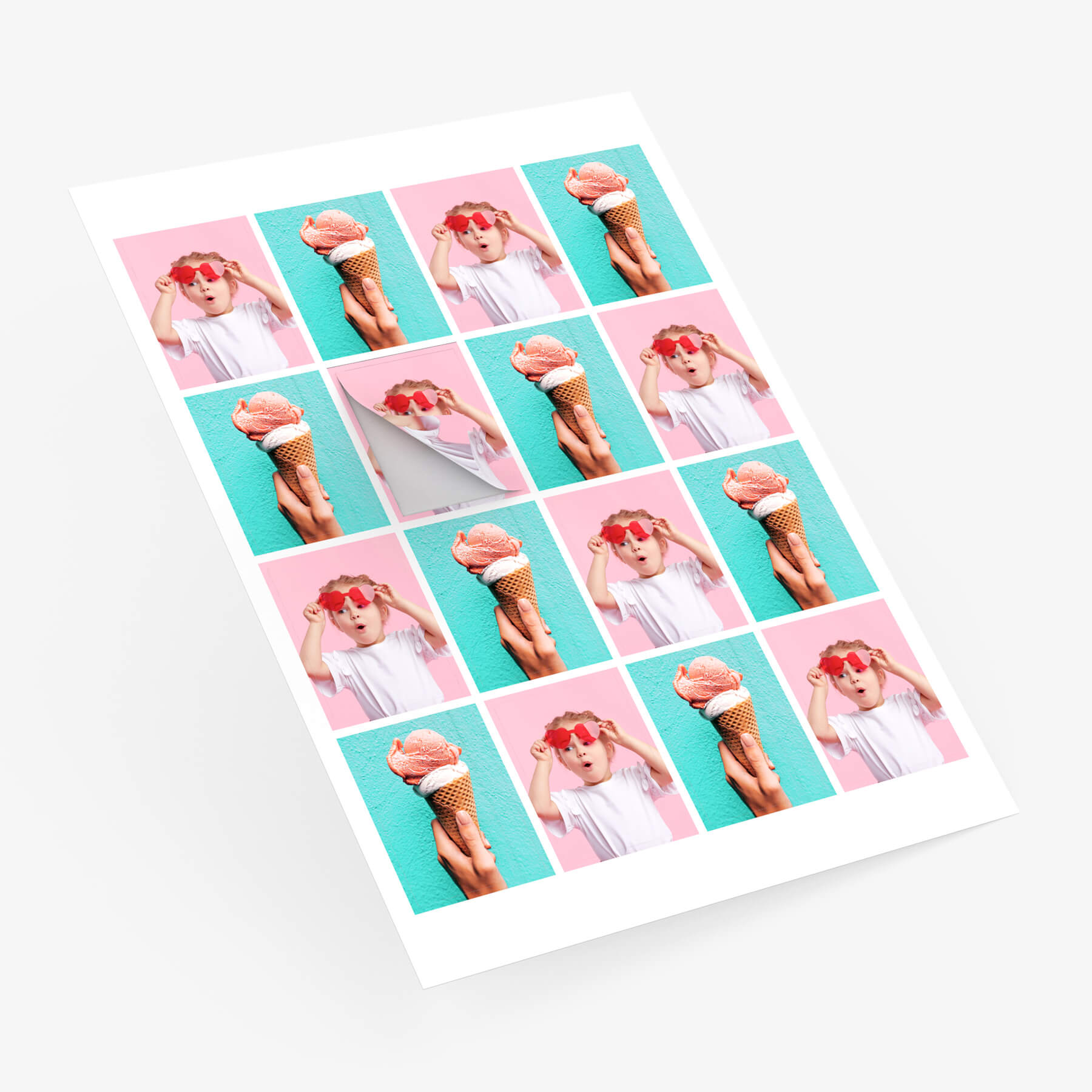 Pro Bogen kannst du wahlweise 12 runde oder 16 rechteckige Fotoaufkleber gestalten. Du lädst deine Fotos hoch und platzierst sie ganz einfach auf der Vorlage: für jeden Sticker ein anderes Foto, bestimmte Fotos mehrmals oder ein ganzer Bogen aus nur einem ausgewählten Foto.